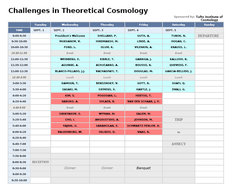 The conference will start on Sept. 1st with a Reception at 7:00 pm in the Tufts European